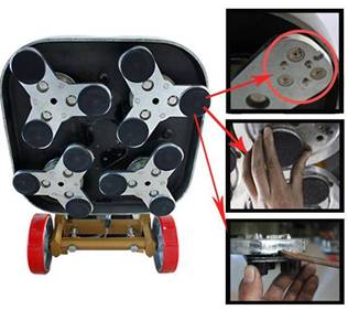 HW-G5, 10hp, grinding width 600mm, 4 grinding plates, 12 pieces of diamond tools. With the magnetic disk and Velcro, It is very easy and shift to change diamond tool. The design of square disc plate could 100% touch wall and grind corner.